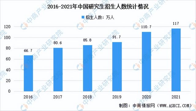 2016至2021年,我国硕士研究生招生规模平均增长15.5%。按照国家线划线规则,在招生计划扩大背景下,今年国家线对应的考生名次势必比要低于往年。从招生角度看,去年我国硕士研究生招生人数约117万人,比2020年招生规模有所扩大。如果今年招生水平继续保持小幅增长,人数规模预计将打破120万。