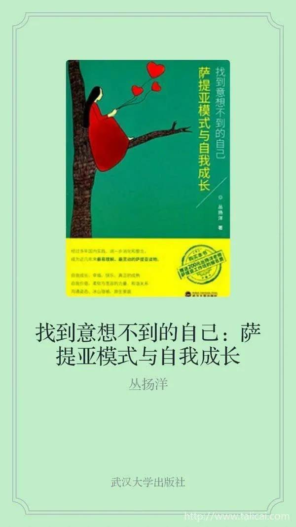 不论你是否接触过萨提亚,如果你是一位自卑感强、有抑郁或自闭倾向、或想更好地处理各种社会关系的人,请你千万不要错过《萨提亚模式与自我成长》这本书。通过阅读此书,能让你达到个人心灵成长,提升自我价值,学会与自己相处,改变家庭关系、婚姻关系等与外部世界的关系,最终实现重写人生剧本,找到人生的幸福。