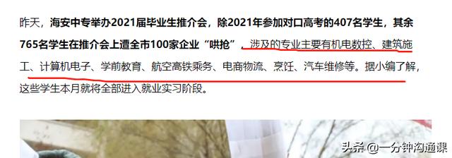 大学毕业生难找工作已经是事实,但是农民工和中专生,职校生却非常的抢手,主要是因为他们的专业好,例如海安中专每年的毕业生都被哄抢一空。