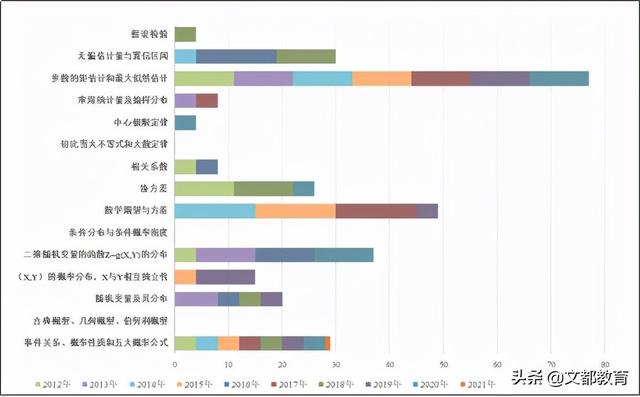 以上三个图形分别是数学一数学三中概率论与数理统计的知识点分布图。可以发现这些题型都是常考题型,也能够看出来有些在近十年中考频比较高,有些相对低一些,而这些相对低一些的正有可能就是今年要考的题型,所以,文都考研的老师们提醒大家在复习的时候一定要做到全面到位,预祝大家在2022年研究生考试中成功上岸!
