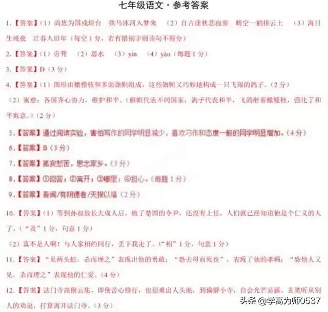 押题卷丨初一语文期末试卷(附答案),收藏起来让孩子做做看吧!