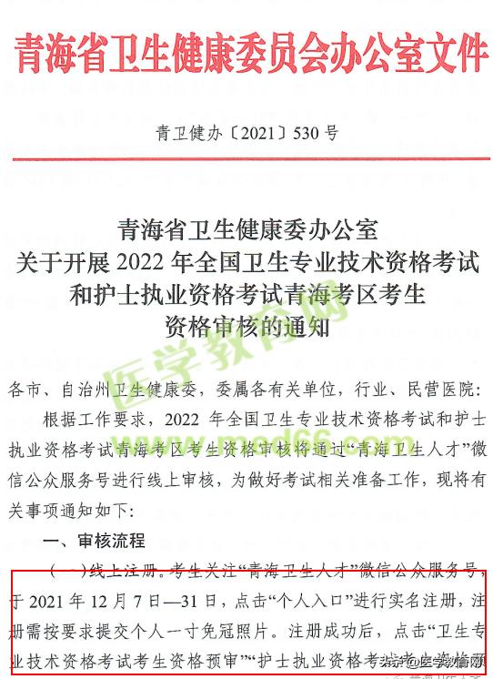 今天青海卫生人才官方公众号发出通知,青海省2022年度卫生资格考试及护士资格考试报名资格审核将于12月7日开始!