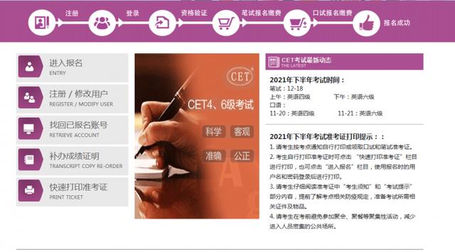 英语六级准考证打印入口:全国大学英语四六级(CET)官网系统(https://cet-bm.neea.edu.cn/)