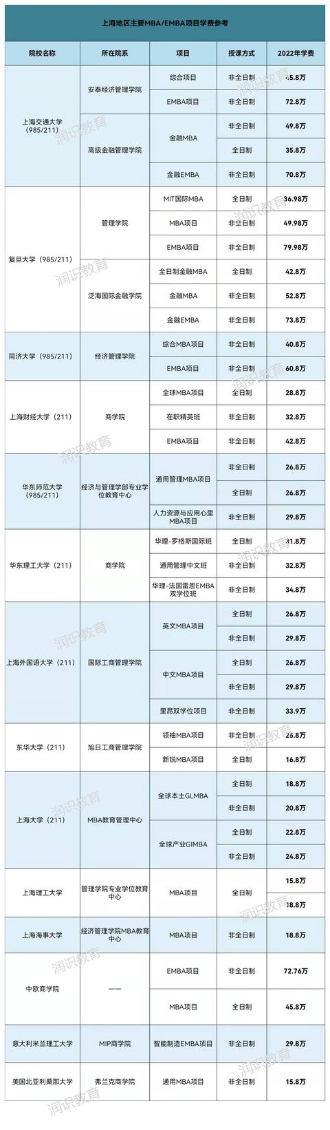 小编为大家汇总了我国主要的MBA培养院校的学费标准,今天先给大家送上:上海市各大主要高校的MBA、EMBA学费情况。