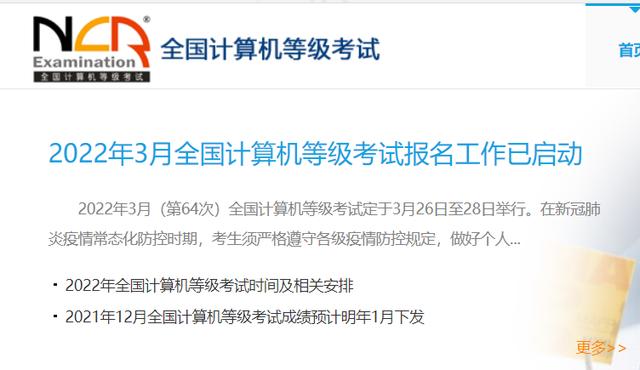 第2022年3月全国计算机等级考试“NCRE”的注册时间为3月26日至28日(第64次)其他详细考试时间以及安排可参考2022年全国计算机等级考试时间及相关安排 – 中国教育考试网 (neea.edu.cn)