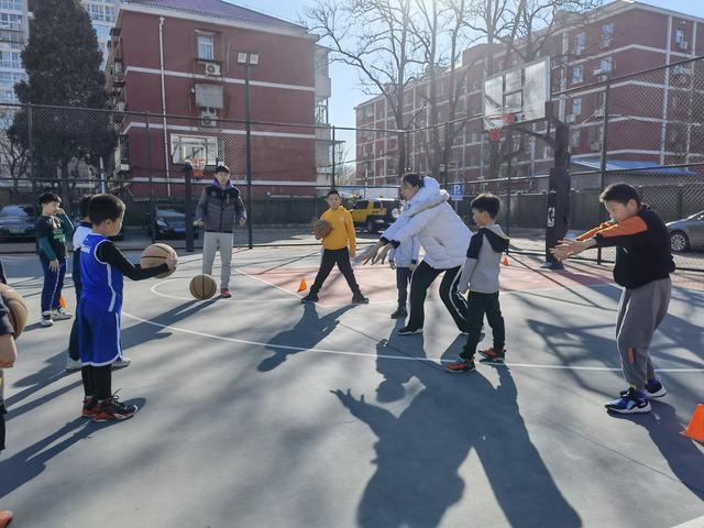 2月26日,北京市少年宫的篮球场上,老师正在指导学生如何传球。图/新京报记者 杨菲菲