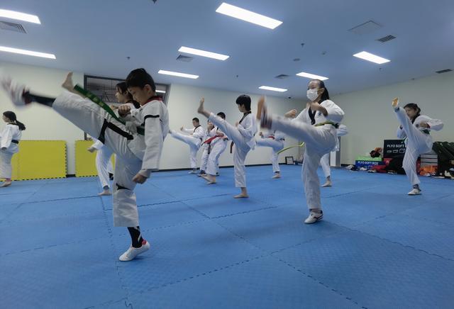 2月26日,北京市少年宫跆拳道教室里,在老师的指导下,学生们开始了基本动作训练。图/新京报记者 杨菲菲