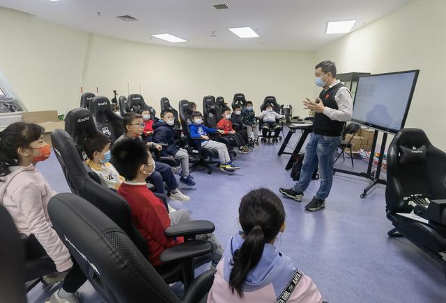 记者注意到,教室一侧还摆放着许多电脑,每台电脑前面都有一个驾驶飞机的操作杆。据了解,模拟飞行课程是2021年新开的课程,一经推出就受到了很多小学生的欢迎。