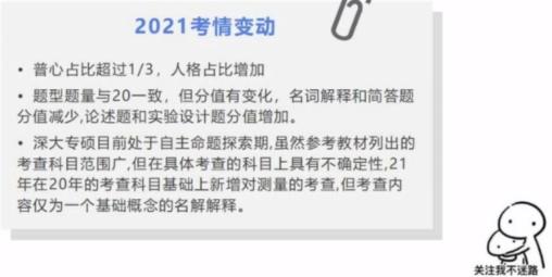 ③20年、21年没有考的其他几科,大家也不能掉以轻心。因为深大目前处于一个出题探索期,没有一个特备稳定的出题风格,比如说一定侧重于哪几科?一定不考哪几科?这些都是说不准的。比如人格就是一个活生生的例子。