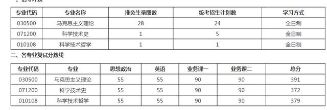 马克思主义学院,马克思理论391,招24,科学技术史372招5人,科学技术哲学379招1人。