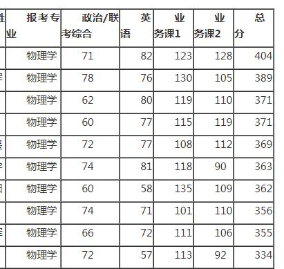 物理与天文学院,物理学复试线330,最高404,最低334。总共10人进复试。