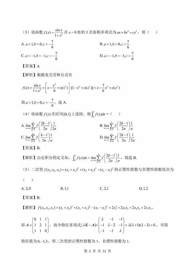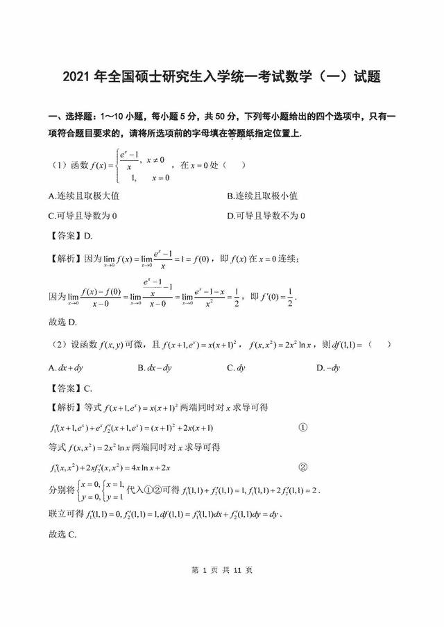 #教育听我说#研究生试题:2021年数学一真题及答案解析
