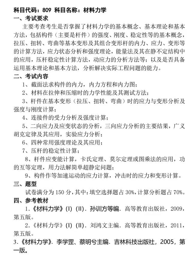 材料力学考试大纲