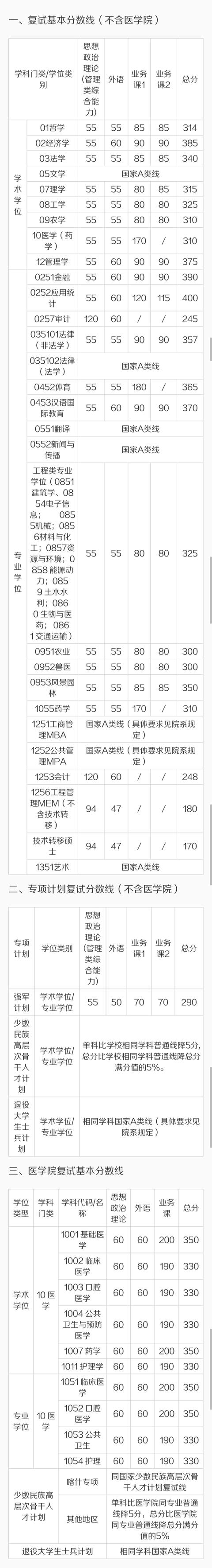 在这里要提醒大家,目前这个复试线只是自主划线高校先行确定的“最低参考线”,最终的复试线,其实是由大家报考的学院来决定,这个情况是很多自划线高校都出现的情况,有些学校甚至会专门说明,原则上只能允许各院系确定的复试线比学校确定的复试线更高,因此,很容易出现能达到学校复试线但无法达到“院线”的情况,对于达不到“院线”的同学,要早点准备调剂,最后,希望大家都能顺利上岸,加油吧!