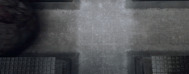 电影不止一次这样夸张的远近景对比: