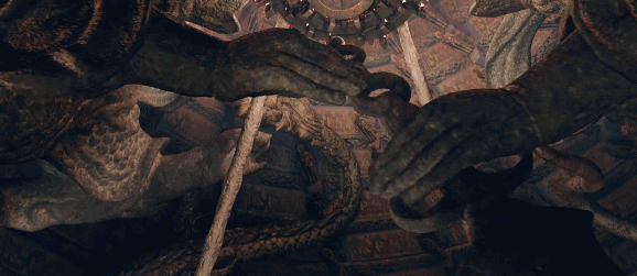 左侧猛然抽剑,右侧接过剑插入墙内……机关正式启动。