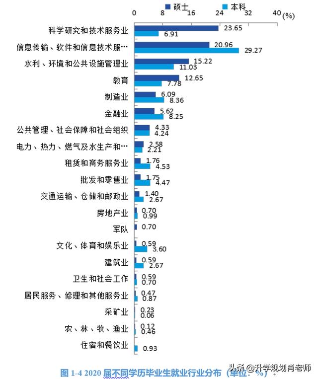 硕士:科研占比23.65%,IT占比20.96%,教育占比12.65%