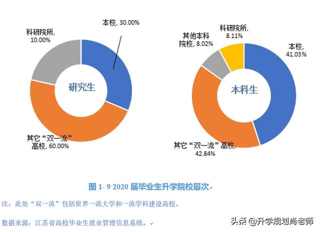 研究生:总升学占比13.57%。国内升学占比5.70%,其中,升入本校占比30%,升入其他双一流大学占比60%。