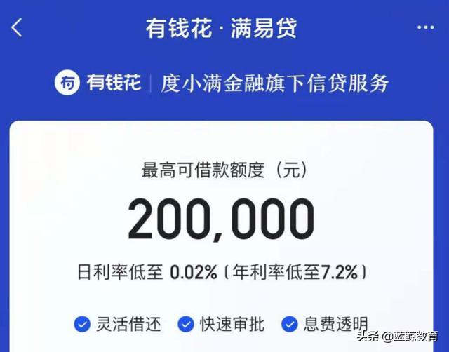 通过贷款短期内可以缓解学生的学费压力,但毕业后却也面临着不小的还款压力。以达内科技的合作机构百度小额贷款有限公司旗下的度小满金融为例,在APP端,其最低年利率是7.2%。按照达内最低2万元的学费计算,学生毕业后十个月的还款期计算,每个月最低要还款2144元。