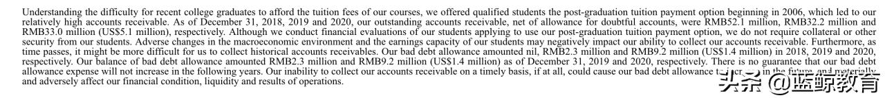2020年,达内科技坏账准备金920万元,可能至少会有460名学生贷款逾期。