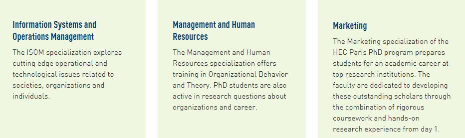 HEC的博士项目研究领域非常广泛,涉及如下7个专业领域: