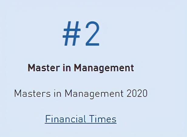 Master in Management项目在2020年《金融时报》世界管理学硕士排名中位列第2MBA项目在2019年《经济学人》中名列全球第3。