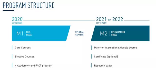 该项目是HEC最热门申研项目,项目含金量非常高。该项目为两年制,可以选择在第一学年和第二学年之间进行为期一年(Gap Year)的实习和工作,即2或3年完成管理学硕士阶段的学习。
