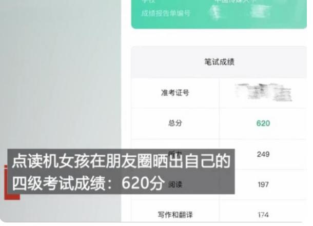 这名点读机女孩查完英语4级成绩后,在朋友圈发布了一条动态,引发了全网围观。