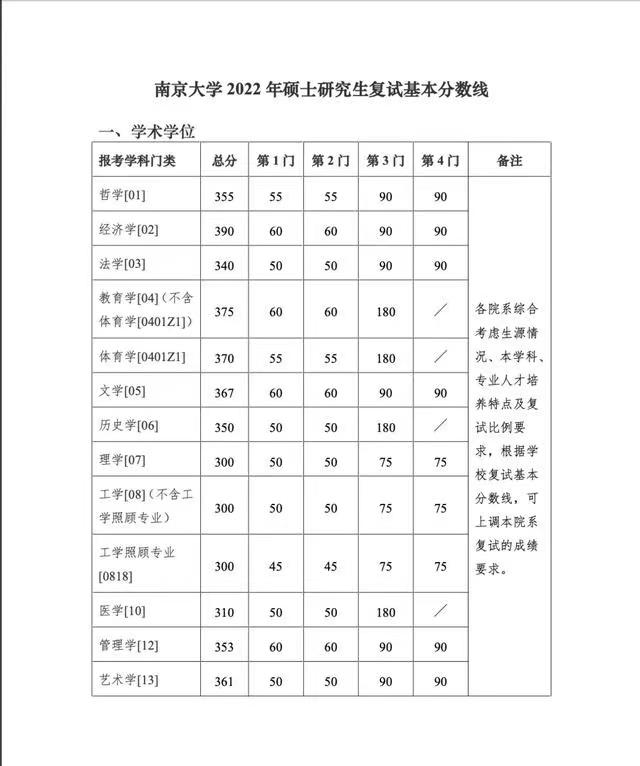 南京大学正式公布2022年硕士研究生复试基本分数线