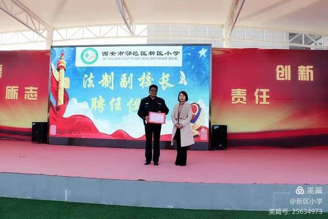 为进一步贯彻落实《未成年人保护法》和《预防青少年犯罪法》,做好学校法治教育工作,切实增强全体师生的法治观念和法律意识,加强校园治安管理和校园周边环境的整治力度,深化“平安校园”、“文明校园”创建工作,营造安定和谐的教书育人环境,11月2日下午,西安市鄠邑区新区小学在学校操场举行了法治副校长聘任仪式暨法律进校园宣讲活动,全校师生参加活动。