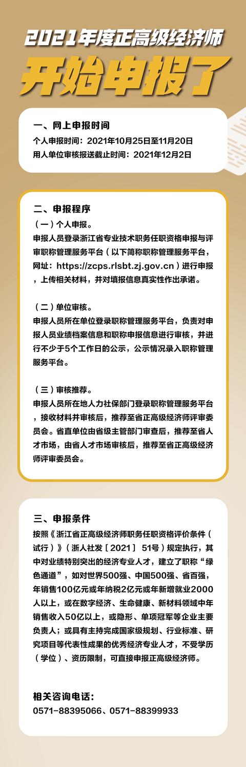 浙江经济师考试(浙江经济师考试时间2022报名时间) 近日,浙江省人力社保厅发布了2021年度正高级经济师申报工作通知,这是浙江省首次按照《浙江省正高级经济师职务任职资格评价条件(试行)》(浙人社发〔2021〕51号)进行申报评审。 来源:浙江人社