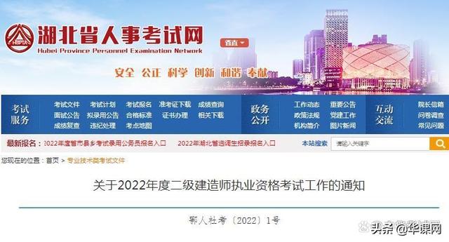 近日,湖北人事考试网发布《关于2022年度二级建造师执业资格考试工作的通知》,其中可知2022年湖北二级建造师报名3月14日9:00开始,报名网站湖北省人事考试网,具体详情如下: