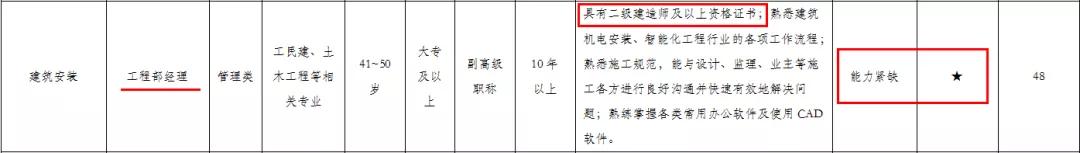 ❺ 工程部经理:能力紧缺、紧缺度1颗星,需求人数48
