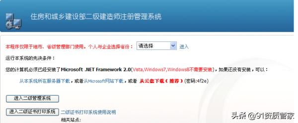 登录中国建造师网站,点击二级建造师注册系统,选择省份后点击进入,进入一二级建造师注册