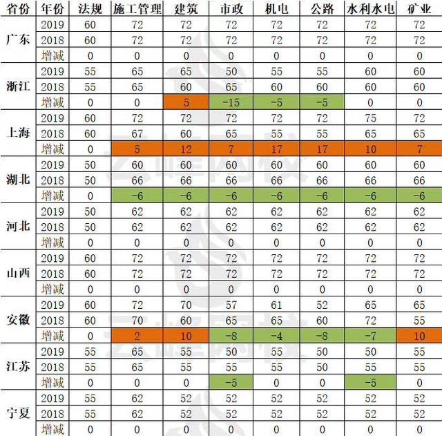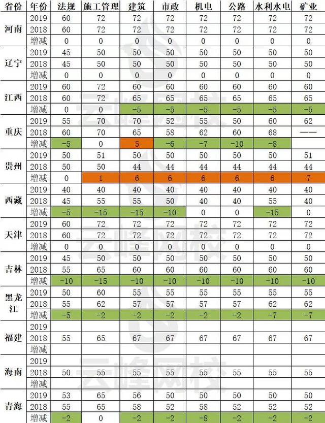 答:万变不离其宗,所有的考试内容都来源于教材,看书就能过。二级建造师的考试,和汽车驾驶证的难度和机制差不多,为什么这么说呢?①二级建造师的考试分为三门功课,分别为法规,管理,实物(类似于语文数学英语),法规满分100分,60分及格便通过,但整张试卷全是客观题(选择题);管理满分120分,整张试卷也是客观题,72分及格便通过;实物满分120分,40分客观题,80分主观题(4道问答题,每道大题20分,每道大题中又有5道小题,有小题,就容易拿分)。客观题,不会还有四分之一的机会蒙对,主观题,小题多确保不会全军覆没。②试卷为全国统一,但录取分数线则各省自定。理论上法规60分通过,管理72分通过,实物72分通过,但实际上,各省每年都不不同程度的降低分数线来满足市场的需求。有降得多的,比如19年四川法规管理实物录取分数线分别为50、55、50(18年:46、51、44);贵州19年为50、51、50(18年为50、50、44),西藏19年为40、40、40(18年为45、55、55)。除了北京、河南、广州、山西、天津这五个省份连续两年走国标(60、72、72),其余省份分数线都有不同程度的降低(具体看下图),甚至上海在18年都调整为60、67、60.。③考试机制,类似于驾照。两年有效期,三门功课,第一年过了前两门,第二年只用考另外一门,即可拿证。看完以上三点,你觉得二建还难吗?