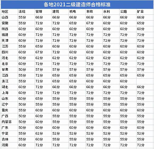 (文章来源:各省份2021年二级建造师合格标准汇总-大立教育)