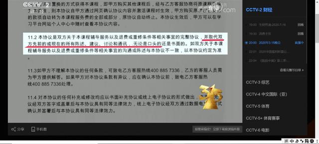 据了解,该学员进入基础班开始学习后,嗨学网的销售又给其打电话,称消费者的学习时间明显不能通过考试,为了轻松拿证,可以进入高端班。销售介绍高端班时,称每周只需要周末上两次课,平常不用学习,考前有押题和答案,只要背背答案,包过三科,且承诺签协议后考不过退费。但销售又声称只有交费后才能看协议。