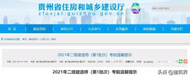 一、2021年二级建造师考试(第1批次)时间为9月19、20日,准考证打印时间为2021年9月13日上午9:00—9月20日上午9:00,请按时登录“二级建造师考试报名系统”打印准考证。考点考场详见准考证。