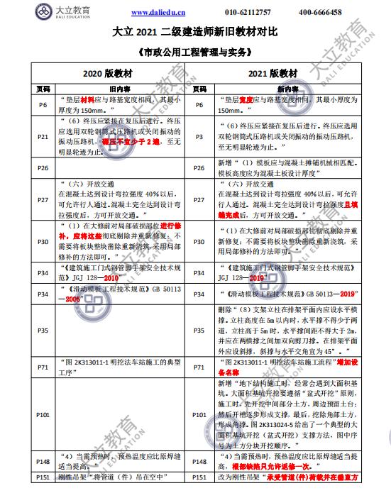 四川二级建造师市政实务教材(二级建造师市政实务教材下载) 2021年二级建造师新版教材已于1月11日正式上市。考生都知道“变动点=考点”,那么,2021年二建新版教材有哪些变化呢? 大立教育老师已经拿到了2021年二建新版教材,并及时为大家整理了新旧对比。一起来看看吧!