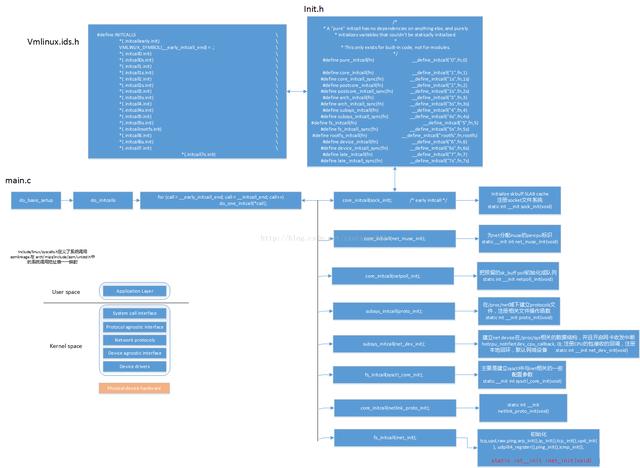 inet_init:注册 INET 协议族的 SOCKET 创建方法,注册 TCP、UDP、ICMP、IGMP 接口基本的收包方法。为 IPv4 协议族创建 proc 文件。此函数为协议栈主要的注册函数: