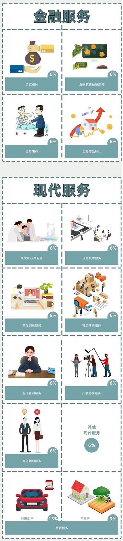 6、购进的贷款服务、餐饮服务、居民日常服务和娱乐服务。