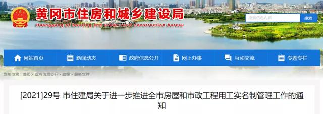 11月2日,黄冈市住建局发布《市住建局关于进一步推进全市房屋和市政工程用工实名制管理工作的通知》。明确: