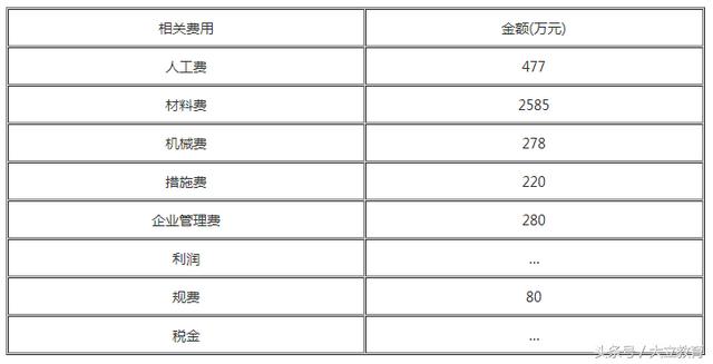 3. (1)直接成本=人工费+材料费+机械费+措施费=477+2585+278+220=35690万元