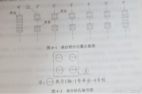 某公司项目部施工的桥梁基础工程,灌注桩混凝土强度为C25,直径1200mm,桩长18m。承台、桥台的位置如图4-1所示,承台的桩位编号如图4-2所示。
