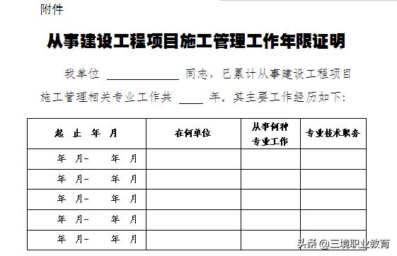 3、年限:建设工程项目施工管理工作满2年