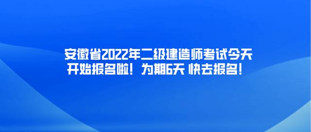 安徽人事考试网发布了《关于2022年度安徽省二级建造师执业资格考试考务工作有关事宜的通知》,安徽今年的二级建造师考试于今天开始报名,报名期是6天,大家抓紧报名啦!