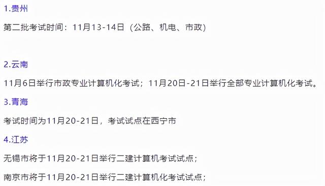 二级建造师是实行地方管理的,所以各省政策各有不同;从2019年福建开始实行二建机考,然后又有贵州、云南等省加入,9月17日青海省有发布公告11月份组织本年度第二次二级建造师考试,但采取计算机化形式;此外,江苏南京、无锡等地也发布了二建机考招投标信息,为之后二建机考做准备;
