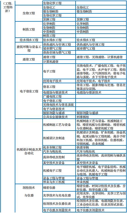 二建报考专业对照表