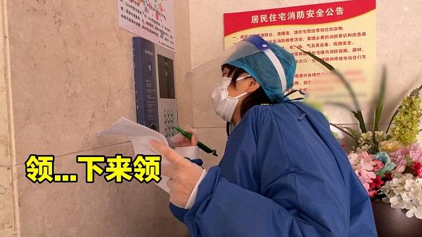 每次核酸,如果本楼栋速度慢了,医生、队友会催她,她就要去催居民,要去做“思想工作”,做不下来就去求助居委会,大家再劝。包括发物资,各户来领东西的速度也是参差不齐,拉宏桑就站在门厅反复按门禁,一家一家叫。