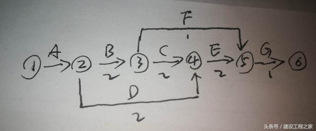 关键线路:工作A—>工作B —>工作C—>工作E —>工作G (估计1分)